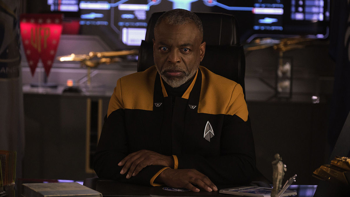 The common theme is one of family and legacy as all these characters converge and reflect. (This is the first episode of the season where all the TNG characters/actors appear, and mostly all in one place.) With the Titan on the run from a compromised Starfleet and also from the Shrike, we start getting into the nuts and bolts of the investigation with the crew’s arrival at Daystrom Station, which is not so much a research facility as an (another dimly lit) abandoned warehouse of illicit technology and Section 31 experiments.